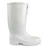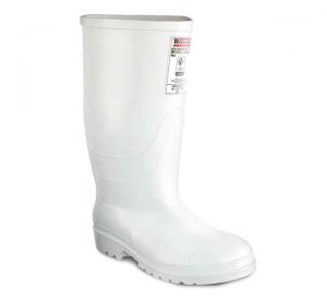 Bota PVC Blanca Con Puntera marca workam safety food industry, son ideales para la industria de frigoríficos, lácteos, cárnicos, avícolas, piscícolas, pesca deportiva, industria pesquera, casinos y restaurantes. Elaboradas en material 100% impermeable, con puntera de acero resistente a fuertes impactos en los dedos de los pies. Resistente a los ácidos grasos, lo que las hace ideales para la industria de alimentos.