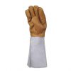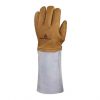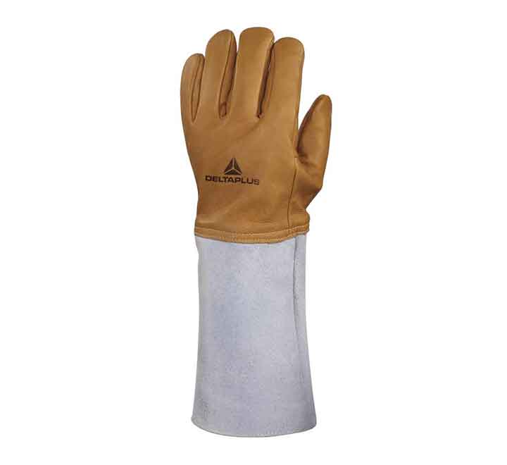Guante Criogénico Marca DELTA, Piel todo flor de vacuno hidrófuga. Injerto poliéster aluminizado. Manguito en piel serraje de vacuno. Forro sintético en mano y manguito. Tipo americano. Manguito de 20 cm. Longitud : 40 cm.