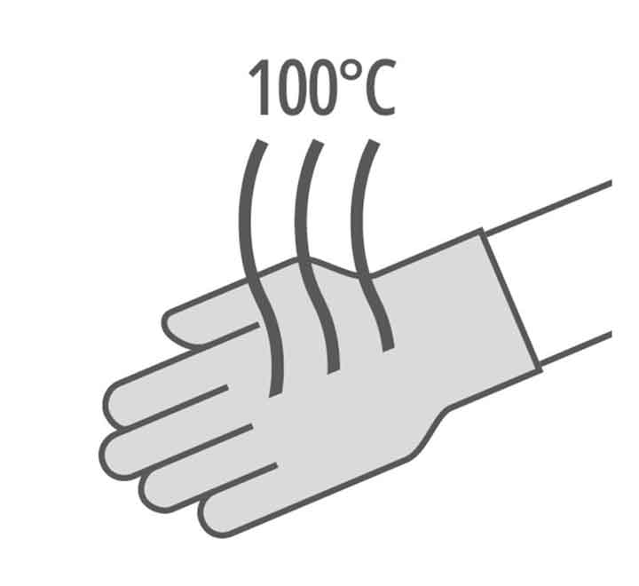 - Aislamiento de fieltro no tejido y barrera térmica en toda la longitud del guante, diseñado para la manipulación intermitente de objetos a temperaturas de hasta 200°C / 400°F